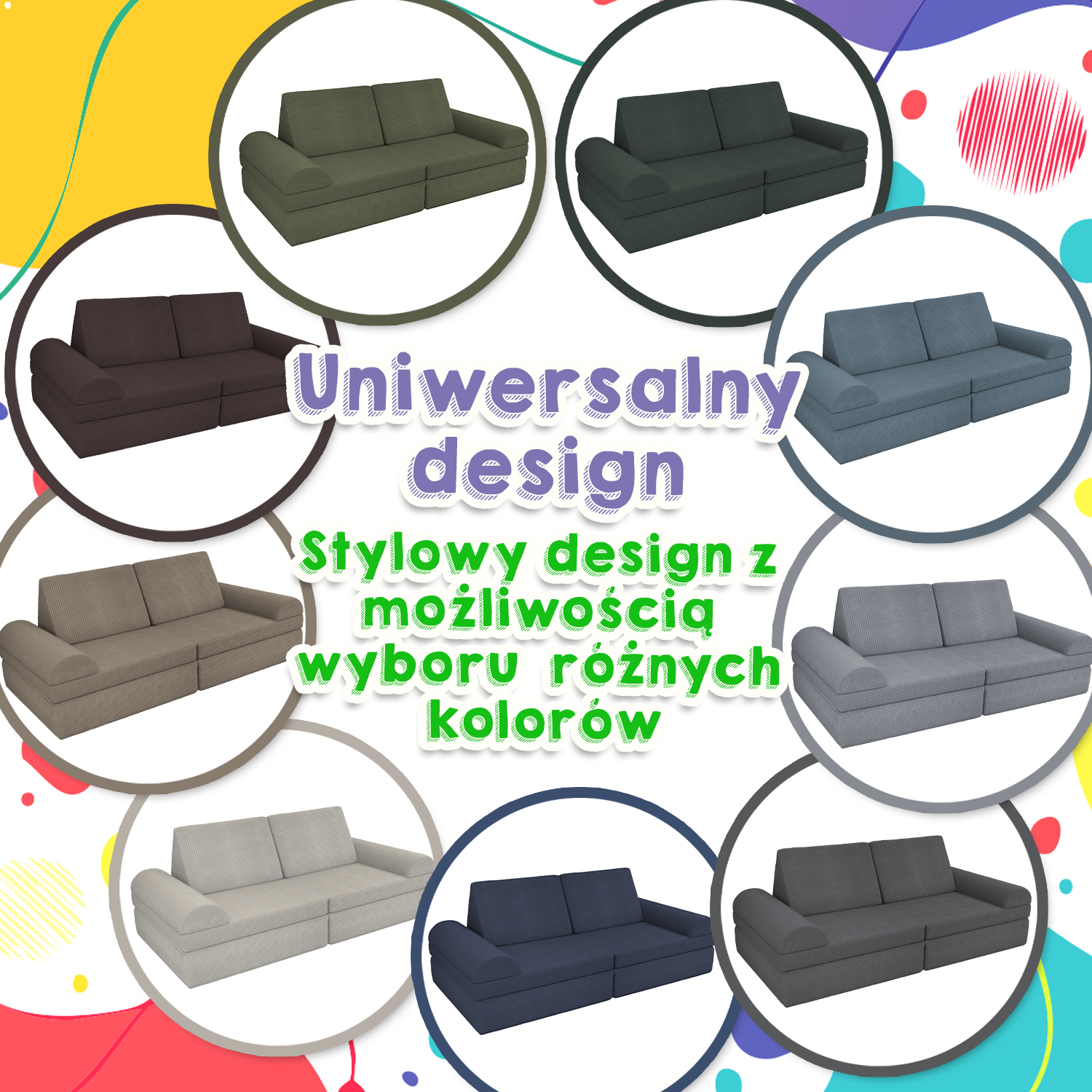 Sofa rośnie razem z dzieckiem – zmienia zastosowanie wraz z wiekiem: od bezpiecznej przestrzeni do zabawy po wygodną strefę chillout.