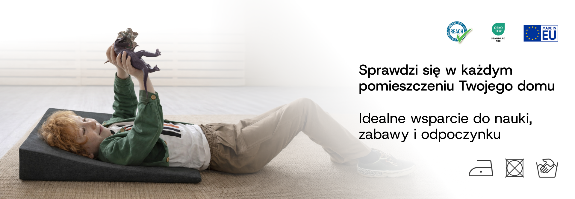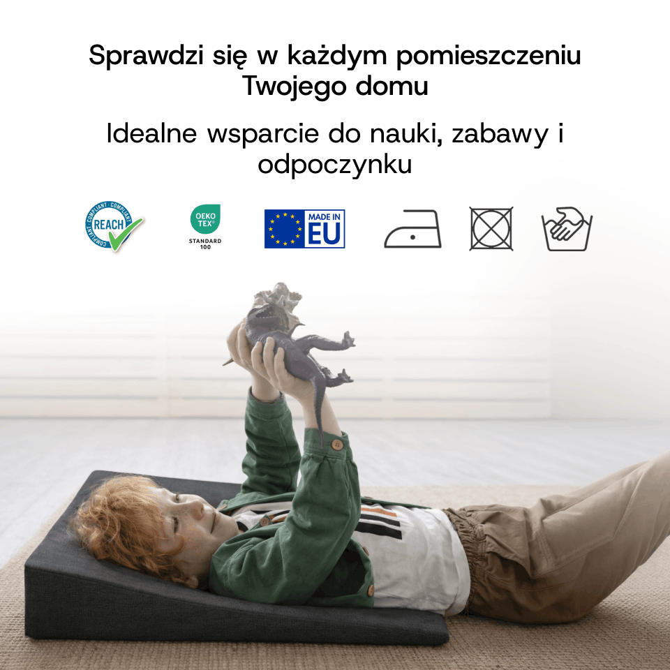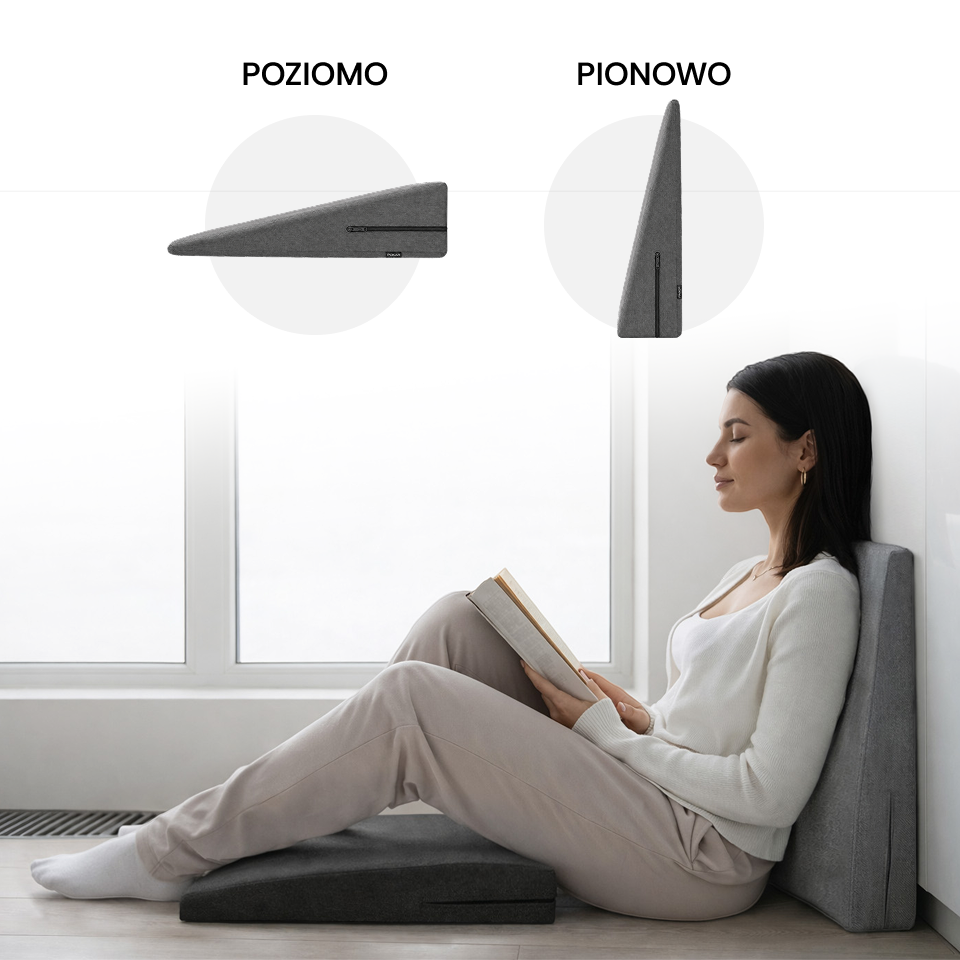 Poduszkę możesz ustawić poziomo jako podparcie pod nogi lub pionowo jako wygodne oparcie pod plecy. Dzięki temu jedna poduszka sprawdzi się w wielu codziennych sytuacjach.